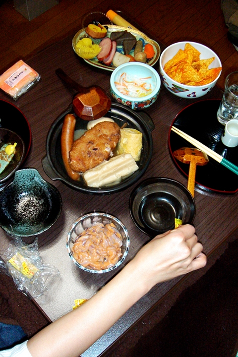そんな感涙に咽ぶかの有り難いお誘いを頂き、せめて元日くらいは日本人らしく過ごそうと、むさ苦しい拙宅に魅惑的なご婦人をお迎えして、睦まじく熱燗なんぞを啜りつつ、手作りおせちを頂いたのでありました。