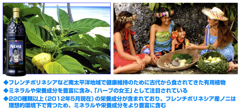 タヒチアンノニジュースを発売した1996年には、ノニが健康に良いという科学的根拠は限られていました。何千、何万の人々の実感はあっても、説明できることは限られていたのです。 |