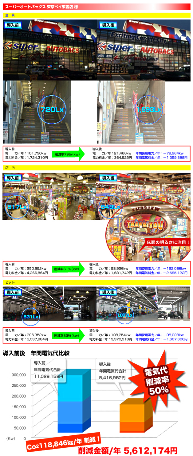 | 第一貨物株式会社 全国75支店 / 愛陸急送株式会社 鴛鴨配送センター / 丸山運輸倉庫株式会社 / 鹿島建設株式会社 トンネル工事現場 / 株式会社SFエンジニアリング / アタカ大機株式会社 柏工場・大阪工場 / 関彰商事株式会社 ベンツつくば販売店 / 静岡いすゞ自動車株式会社 / エンパイヤ自動車株式会社 / 株式会社マルヤスエンジニアリング / 日本エアロテック株式会社 調布飛行場格納庫 / 株式会社後藤光学研究所 / 神奈川県指定自動車教習所協会 / 株式会社福澤自動車学校 / 湘南平塚モータースクール / ドリームモータースクール昭和 / 株式会社オートバックスセブン提携 全SA店・全AB店 店内照明・ピット外回り照明取り替え工事 SA東京ベイ東雲店・SA市川店・SA京都ワウワンダー店・SA千葉長沼店・SA小平店・AB南行徳店・SA甲府店・AB韮崎店・AB富士吉田店・AB昭島店・SA八王子店駐車場・AB京都北山店・AB堺石津店・オートバックス西日本ロジスティクスセンター・AB伊勢崎店・AB本庄店・西日本ディストリビューションセンター・SA新小岩店・AB加平インター店・AB江戸川店・AB越谷店・AB町田店エントランス / 株式会社北嶋紋製作所 / 株式会社サンヨーメディカル埼玉工場 / 株式会社協和エクシオ 湘南台店・厚木店 / 寿倉庫株式会社 / 株式会社和光ゴルフ / 株式会社東部重機 / 株式会社伊勢原ゴルフセンター 他 |